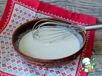 Вскипятить молоко, влить в тесто, ещё раз слегка взбить. Влить масло, размешать. |