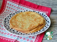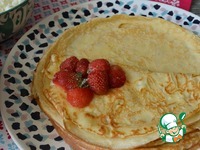 На хорошо разогретой сковороде испечь блинчики, по 1-1,5 минуты с каждой стороны, огонь средний. Получилось 8 блинчиков, 20 см.. |