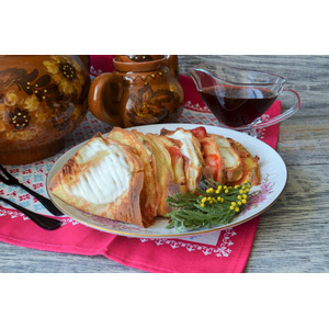 Запечь при 200 градусах : 5 минут, нижний нагрев и 10 минут под грилем. |