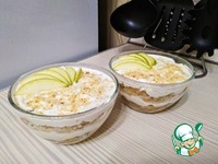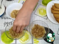Затем слои повторяются: рикотта, печенье, груши, орехи. Последним слоем должна быть рикотта. Сверху я буду украшать кусочком груши, который оставила в начале, и крошкой из печенья. |
