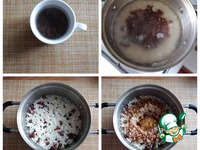 Изюм нужно залить кипятком минут на 5, откинуть на ситечко и затем хорошо промыть под проточной водой. Мы его будем варить вместе с рисом. В кастрюлю насыпаем рис, выкладываем изюм, заливаем водой, солим по вкусу и варим до впитывания всей жидкости. Это быстро, минут 15. Снимаем с огня. В центре делаем углубление и кладём туда мёд, наливаем масло подсолнечное, присыпаем по поверхности корицей. Мёд и корицу берите по вкусу. Меня количество, указанное в ингредиентах, устраивает. Масло подсолнечное в постные дни во время Поста класть не обязательно, а в обычные дни вне Поста его хорошо заменить сливочным маслом. Я налила нерафинированного подсолнечного масла. Говорю сразу, что ярко выраженного запаха его нет в готовом блюде. |