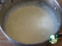 Взбить венчиком. Помешивая, влить молоко и поставить на слабый огонь. Довести до лёгкого загустения, постоянно размешивая. Не кипятить смесь. |