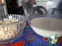 Поставили нутовое "молоко" на огонь и не отходим от него ни на шаг! Помешиваем постоянно, иначе могут образоваться комочки, а они нам совсем не нужны. Чем дольше масса вываривается, тем становится гуще и сильнее булькает. Так больно, когда попадает на руку! Поэтому перемешивайте постоянно. Чем гуще масса, тем плотнее будет сыр, так что можете сами регулировать. Я сварила до густоты картофельного пюре.