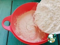 100 мл воды + 150 мл кефир, растительное масло, соль все перемешиваем и добавляю опару и снова все перемешиваю |