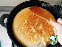 Далее сковороду смазываю растительным маслом и выкладываю тесто разравниваю немного по диаметру сковороды, у меня 24 см и закрываю пищевой пленкой, оставляю так на растойку на 20 минут |