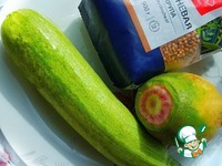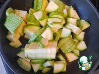 Можно делать несколько действий одновременно. Ставим варить гречу. режем кабачок ломтиками (полумесяцем) и припускаем в небольшом количестве воды. |