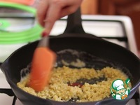 Булгур тщательно промыть, немного просушить. Высыпаем в сковороду, перемешиваем и обжариваем на среднем огне 3 минуты. |
