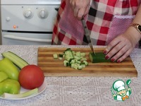 Подготовим овощи. Огурцы нарезаем кубиками. |