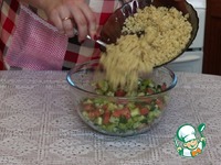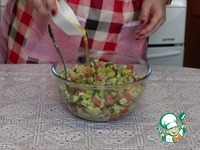 Собираем салат. Все нарезанные овощи и булгур выкладываем в большую миску. Солим, перчим. |