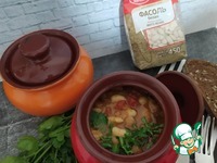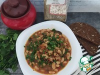 В горшочки выкладываем фасоль, обжаренный лук, томаты, добавляем специи и соль, зубчик чеснока и немного воды. Вода должна доходить до уровня продуктов в горшочке. |