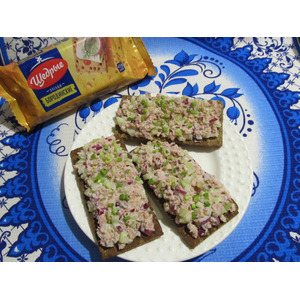 Для основы я выбрала хлебцы "Щедрые" бородинские". На мой взгляд они отлично сочетаются с рыбой. Приятного аппетита!!! |