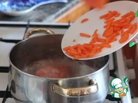 Морковь отправляем в кастрюлю. Варим 5 минут. |