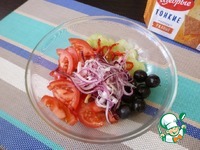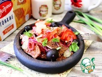 Описание: Панцанелла - это итальянский овощной салат с хлебом. Это блюдо родилось на кухне бедных крестьян. Черствый хлеб добавляли в овощной салат, он пропитывался соком и салат получался вкусным и сытным. В большинстве рецептов в салат добавляются овощи какие найдутся в холодильнике - огурцы, сельдерей, сладкий перец, зелень.