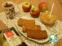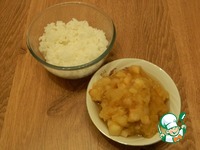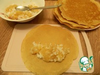 Смешаем рис с тушенными яблоками и нанесем начинку на блин. Завернем его. |