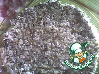 Маринованные грибы промываем, прижариваем, меленько режем и выкладываем на рис |