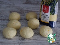 Выложить тесто на рабочую поверхность, обмять, разделить на 7 (6,8...) равных частей. Сформировать из каждой круглую булочку. |