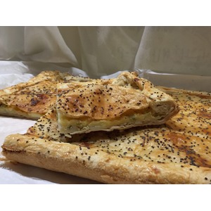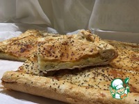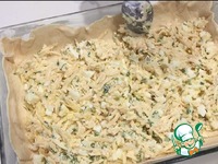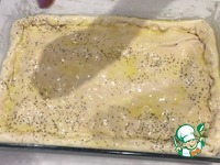 Раскатываем тесто. Один пласт укладываем на дно формы. Затем выкладываем начинку и накрываем вторым пластом теста. Форма 35х25. |