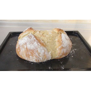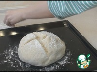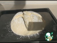 Противень я присыпала мукой. Делаем острым ножом надрез крест накрест, присыпаем мукой, накрываем полотенцем и оставим ещё на 20 минут. |