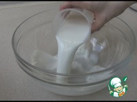 В миску нальем теплое молоко, добавим дрожжи, сахар, размешаем. |