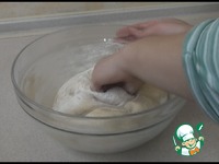 Всыпаем постепенно муку и замешиваем мягкое тесто. Оно немного липнет к рукам, так и должно быть. Отправляем в миску, накрываем полотенцем и оставляем в теплом месте без сквозняков на 45 минут. |
