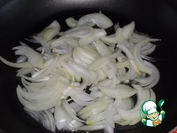 Сковороду ставим на огонь и наливаем в нее растительное масло. Выкладываем нарезанный лук. |
