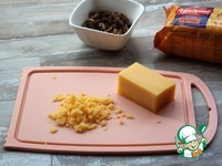 Зажарку выложить в чашку, остудить. Сыр нарезать мелкими кубиками, добавить к грибам. (Хорошее сочетание с копченым сыром.) |