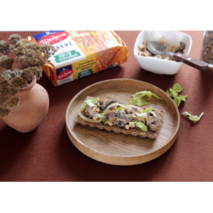 Заправить грибную начинку соусом, посолить, поперчить. Если есть грибной порошок, можно добавить в начинку для усиления вкуса. Выложить начинку на хлебцы "Щедрые" |