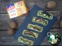 Сверху киви выложить по 1 рыбке из шпрот. |
