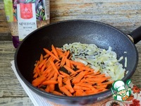 Разогреть в сковороде растительное масло, обжарить лук, 3 минуты. Добавить морковь, жарить 3 минуты. |