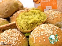 В ведёрко хлебопечки влейте горячую воду, добавьте шпинатное пюре, соль, сахар и растительное масло. Дайте смеси остыть до ~ 40-ка градусов. По верх жидких ингредиентов добавьте мучную смесь (мука+овсяные отруби+дрожжи). Режим приготовления "домашнее тесто". |