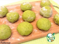 Шпинатное пюре : пучок свежего шпината хорошо промойте, оборвите листочки. Поместите листья шпината в ёмкость, влейте горячую воду (кипяток). листья сразу обмякнут. Воду полностью слейте, измельчите горячие, влажные листья шпината с небольшим количеством (1 ст. л.) раст. масла при помощи блендера.