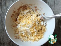 Плавленный сырок натереть на мелкой тёрке. Хорошо перемешать. |