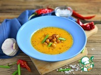 Описание: Острый, ароматный тыквенный суп-пюре с обжаренным нутом! Конечно можно приготовить суп не острым, заменив перец чили на болгарский, но так как я любитель острых блюд, у меня супчик достаточно острый. В любом варианте суп понравится и любителям тыквы и любителям нута. Очень рекомендую попробовать, простые ингредиенты, а как вкусно!