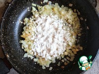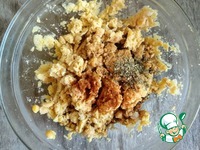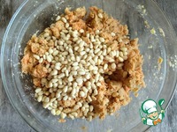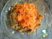 Затем добавить морковь, натёртую на мелкой тёрке. Хорошо перемешать. |