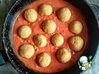Выложить в томатный соус тефтели. Готовить с одной стороны 5 мин, затем аккуратно перевернуть ложкой и готовить ещё 5 мин. Снять с огня, накрыть крышкой и оставить на 10-15 мин. |