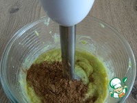 К измельченным овощам добавим какао, размешаем ложкой и немного пробьем блендером до равномерного распределения по массе. |