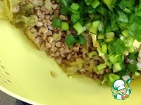 Огурцы также натереть на крупной тёрке. Лук нарезать. Готовую гречу, огурцы, лук смешать и поперчить. Для непостного варианта можно добавить ещё варёное яйцо |