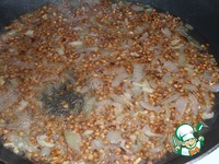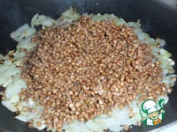 Затем в сковороду добавляем промытую гречневую крупу. |