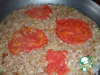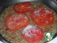 По прошествии указанного времени добавляем в сковороду помидоры. (Можно замороженные). Готовим еще 10 минут. |