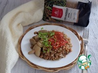 Выкладываем гречку на тарелку. Подаем с маринованными грибочками и зеленью. |