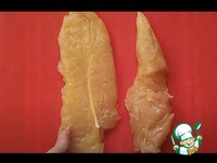 У меня было малое куриное филе, которое я промыл, обсушил бумажным полотенцем, и отбил. |