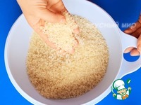 Рис промыть до прозрачной воды. Наполнить водой кастрюлю, довести до кипения, добавить соль и рис. Варим до полуготовности риса. |