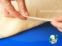 Возьмём тесто и покатаем пласт тонко. |