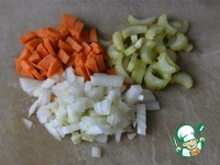 Овощи моем, чистим. Сельдерей режем соломкой, лук кубиками, морковь мелкими кубиками или полосками. |