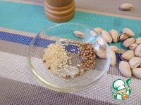 Для ароматной посыпки очистить фисташки от скорлупы. Смешать фисташки, кунжут и кориандр. |