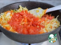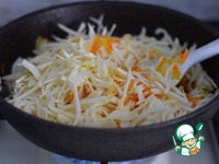 ... и нашинкованную капусту. Обжарить овощи пару минут. |