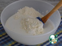Муку просеять, смешать с солью. Влить масляную эмульсию в муку и замесить мягкое, пластичное тесто. Оно не должно липнуть к рукам или рабочей поверхности. Вымешивать долго тесто не нужно. |