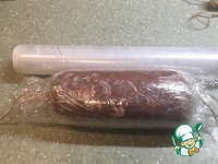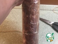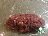 Вымешанное мясо убираем в холодильник на сутки. Сутки прошли. Расстилаем на столе рукав для запекания, выкладываем на него мясо. Стараемся не делить на кучки, а выложить одним комом. Формируем батон. |