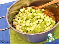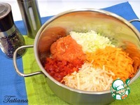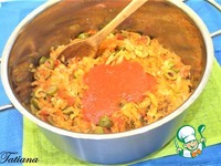 Далее в овощную заправку влейте томатное пюре, готовьте еще 3-5 мин. |