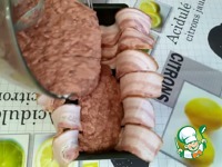 Накрываем фарш полосками грудинки, чередуя слева и справа. |